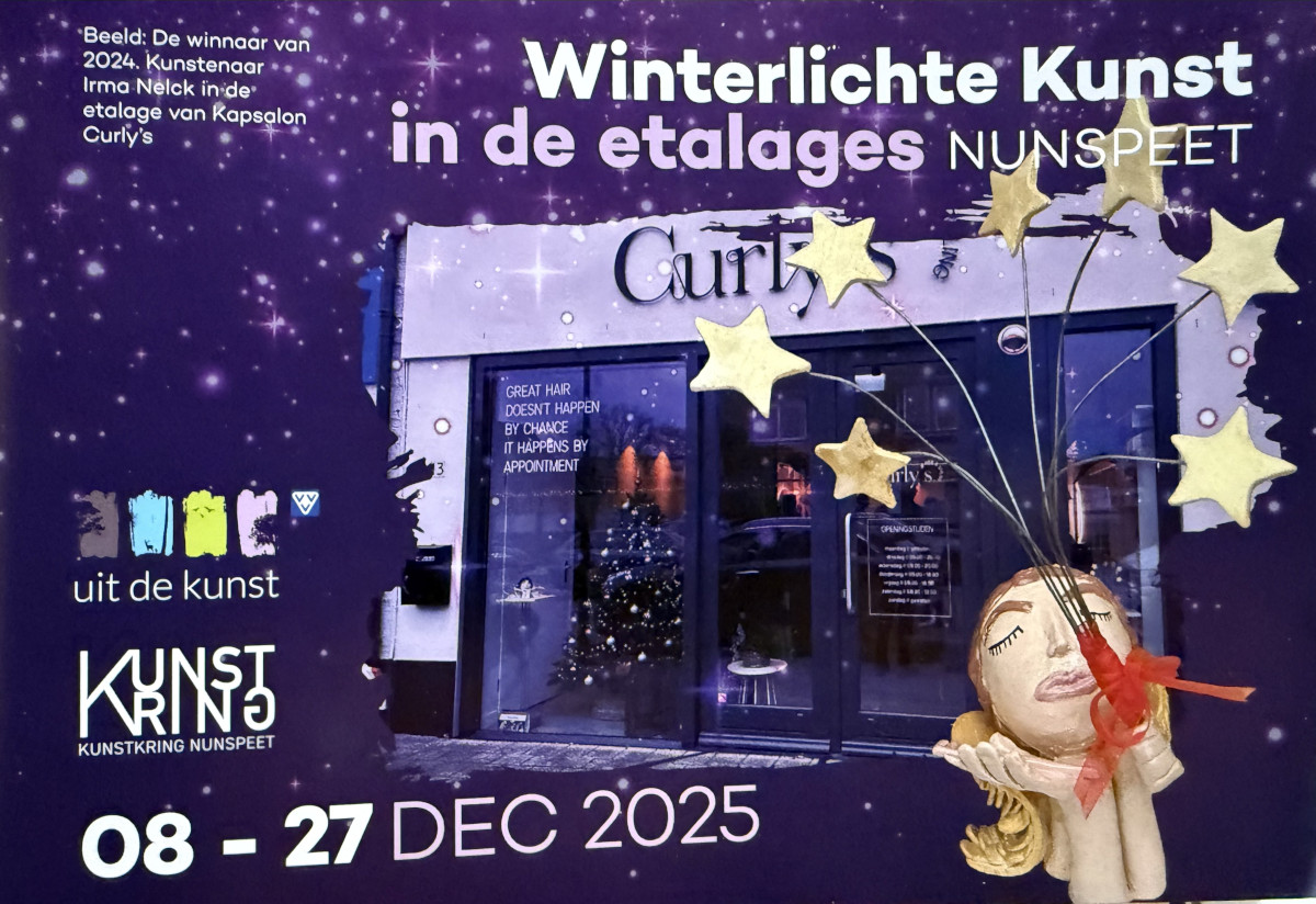 Winterlichte Kunst in de Etalage is een initiatief vanuit de Kunstkring om de Nunspeetse kunstenaars een podium te geven tijdens de decembermaand. In samenwerking met winkeliers krijgt iedere kunstenaar een etalage toebedeeld. ,,Zo kwam ik bij José terecht. Vandyck was voor mij een nieuwe winkel en samen met José heb ik een sfeer gecreëerd die bij ons en de winkel past”, vertelt Gabriëla. ,,Het geeft een leuke verbinding tussen winkeliers en kunstenaars.”